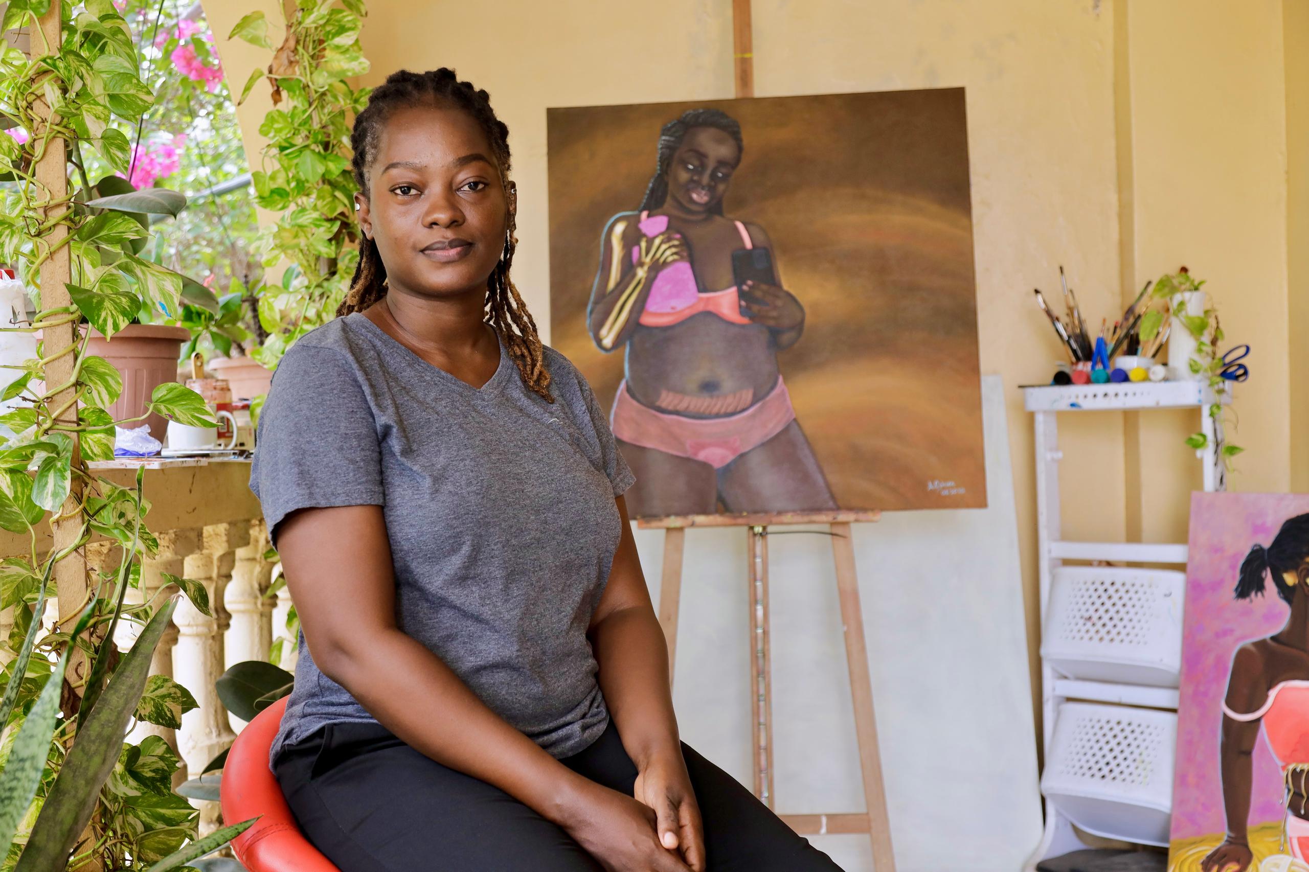 Abena’s work explores Afro-fem surrealism, delving into the complexities and beauty of contemporary womanhood, particularly in Ghana. A talented atist who dedicates herself to her craft.
